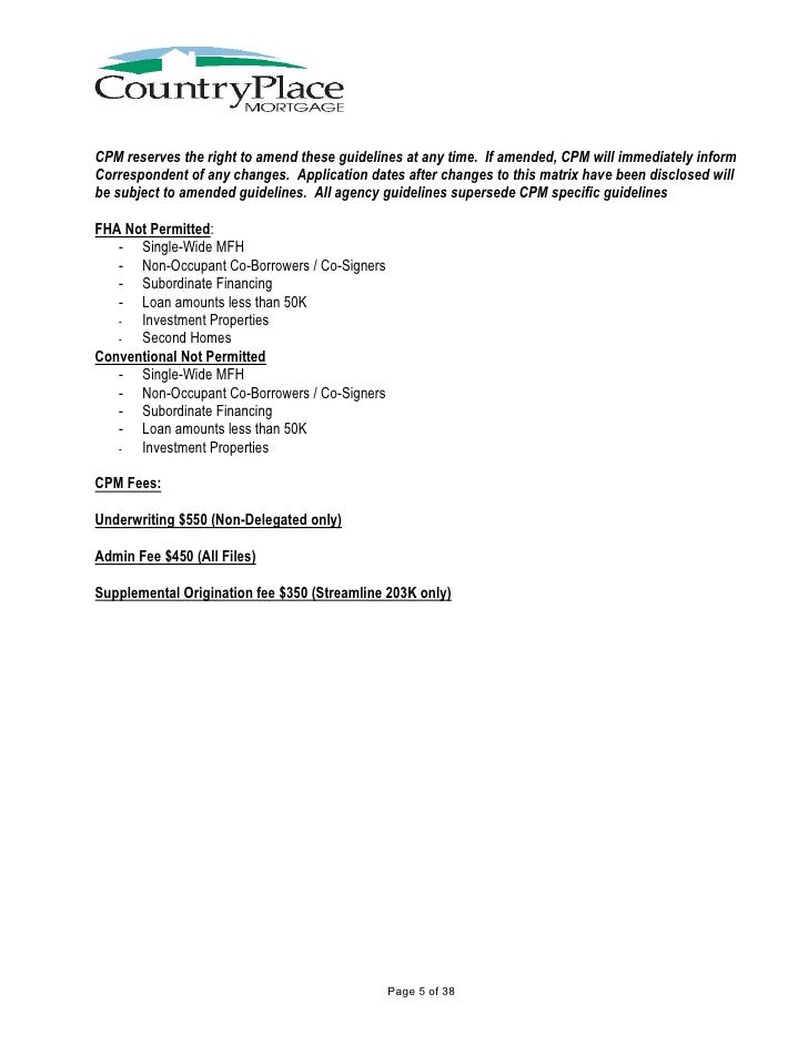 PRODUCT GUIDELINES - Mortgage Compliance, Quality & Efficiency
